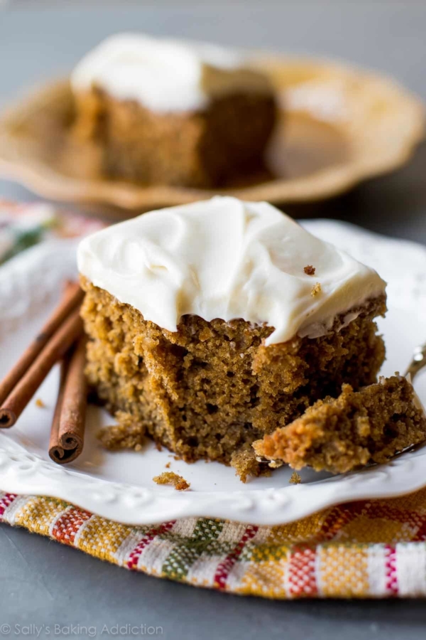 Homemade and super moist spice cake with tangy cream cheese frosting. Such an easy recipe packed with TONS of flavor!