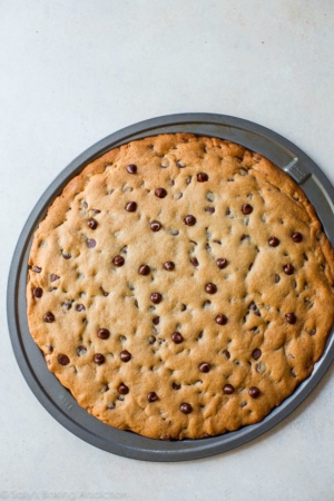 Easier than rolling individual cookies and no cookie dough chilling. Chocolate chip cookie pizza is perfect for sharing!