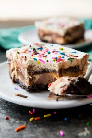 Simple and divine 5-layer ice cream cake sitting on top of an Oreo crust. Cool off and celebrate with this easy recipe!