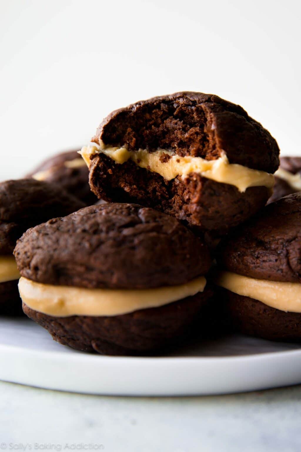 Sweet, salty, and rich, these chocolate whoopie pies with salted caramel frosting satisfy all your dessert cravings!