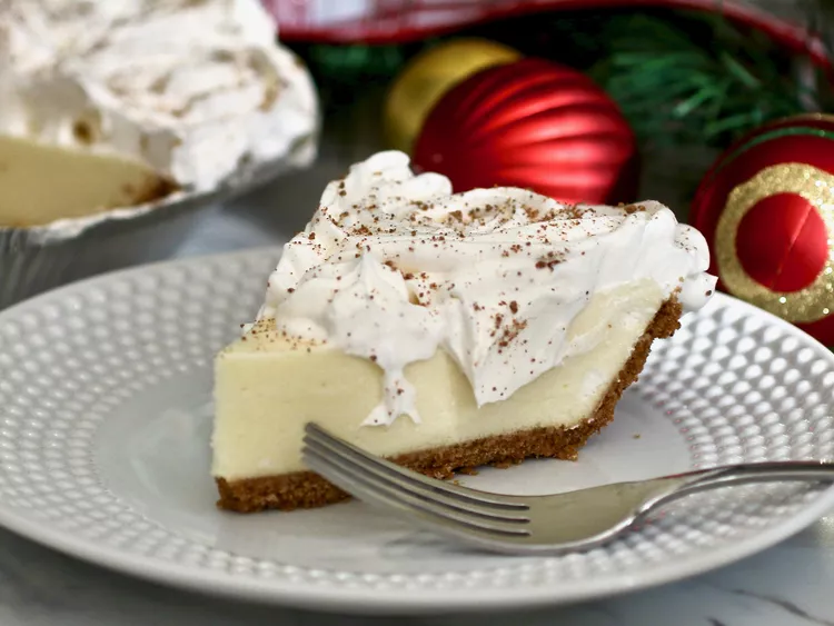 This delicate Bavarian cream pie features a homemade eggnog that can be made in the microwave or on the stovetop. A graham cracker crust may be substituted for pre-baked pie crust. Creating this pie is a bit to do, but well worth the time spent!