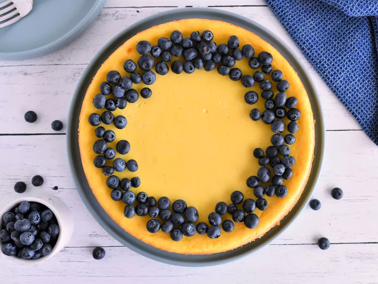 This is a tasty cheesecake to make during the Jewish holiday of Shavuot, when you eat a lot of dairy foods. Top with your favorite blueberry, strawberry, or other topping. Or enjoy it without a topping. It is a delicious cheesecake!