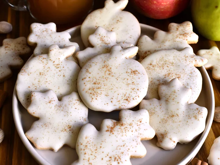 These apple cider cutout cookies take some time to make, but are worth the effort. They're a no-spread, shortbread-like cookie, full of spiced apple flavor. The icing uses both fresh and reduced cider; the apple flavor really comes through the day after the cookies are baked.
