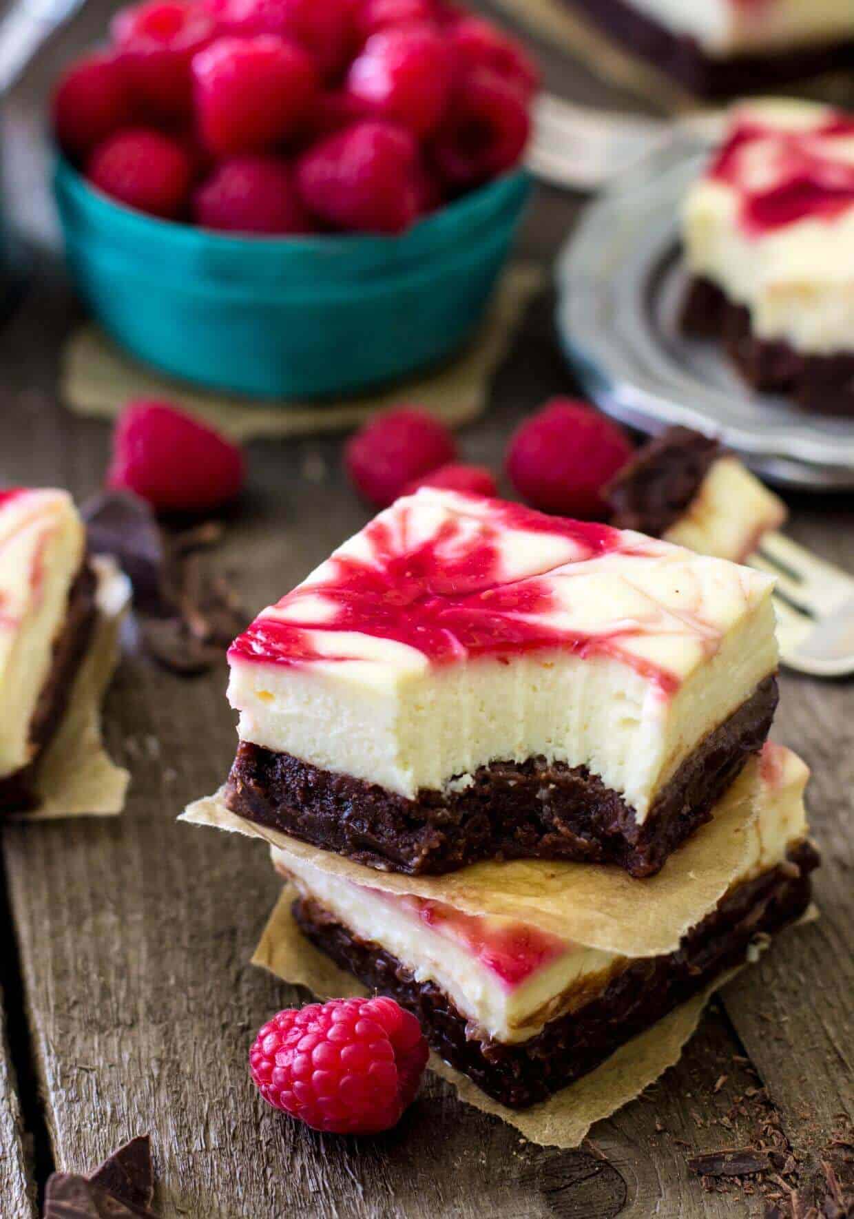 These ultra fudgy homemade brownies pair perfectly with a creamy, tangy raspberry cheesecake filling swirled throughout. Dotted with fresh raspberries on top, raspberry cheesecake brownies give a whole new meaning to pretty in pink. When it comes to indulgent and festive Valentine’s Day dessert recipes, this luscious cheesecake + brownie combo checks all the boxes!