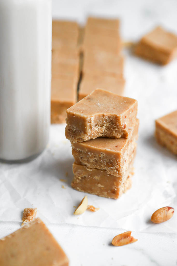 The creamiest, smoothest, peanut butteriest fudge ever. Only 4 ingredients and no candy thermometer or stove are required.