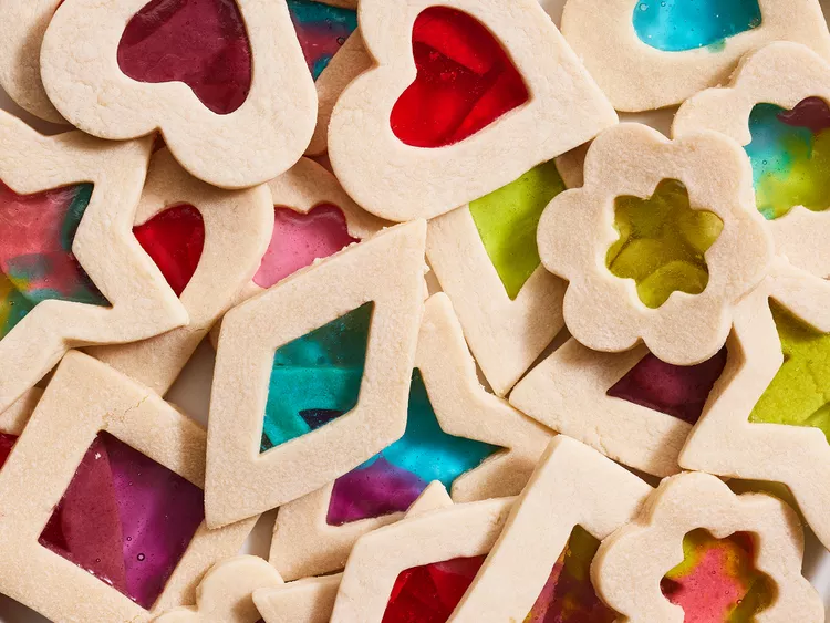 These beautiful stained glass cookies are made with a yummy sugar cookie dough that doesn't spread when baking. They are super easy to make and require no chilling. Great for gift giving, or you can cut out tiny holes in the top to make ornaments for the holidays.