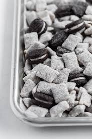 Made from simple ingredients like Chex cereal, Oreo cookies, chocolate, and powdered sugar, this Cookies & Cream Puppy Chow (aka Muddy Buddies) is as easy to make as it is irresistible. Enjoy a white chocolate and semi-sweet chocolate version in one!