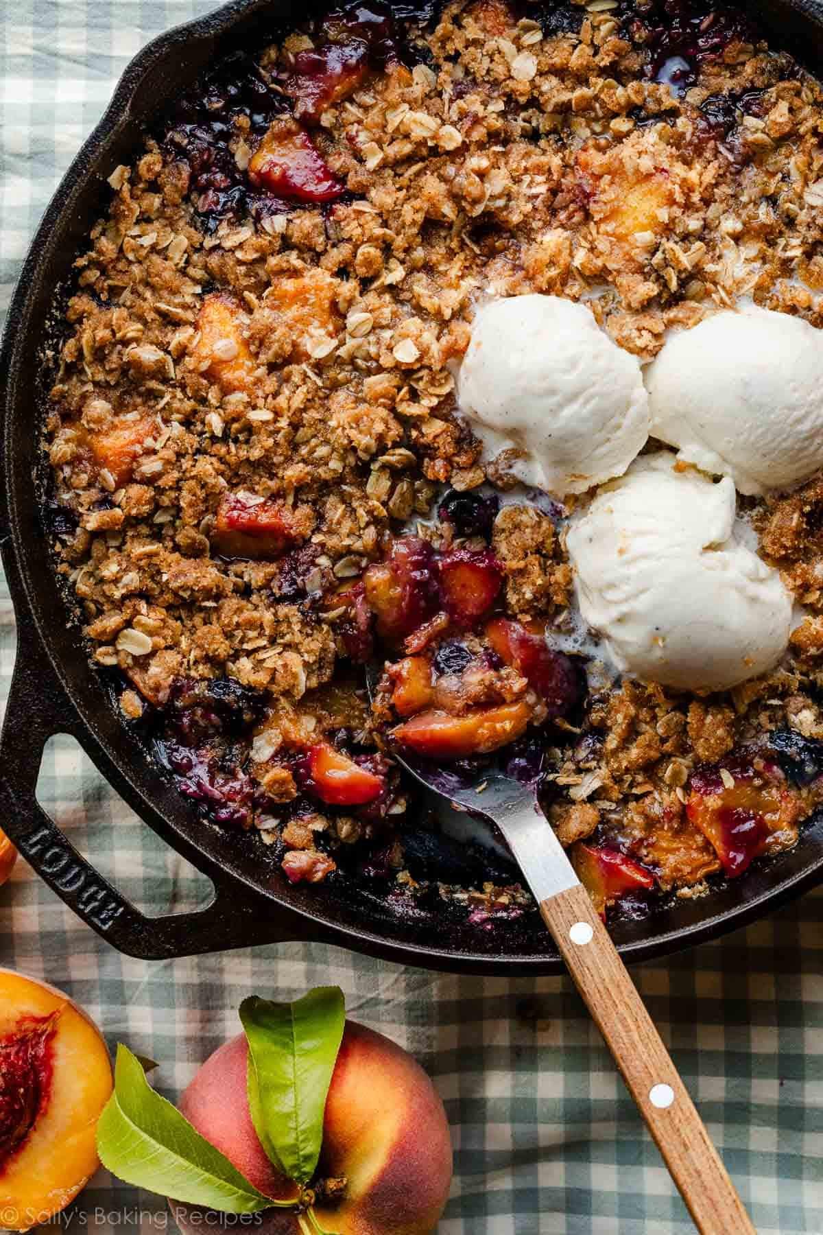 Take fruit crisp to the next level by browning the butter and combining two of summer’s best fruits. You’ll appreciate how easily this crisp comes together—you don’t even have to peel the peaches. Don’t skip browning the butter—it adds unparalleled flavor!