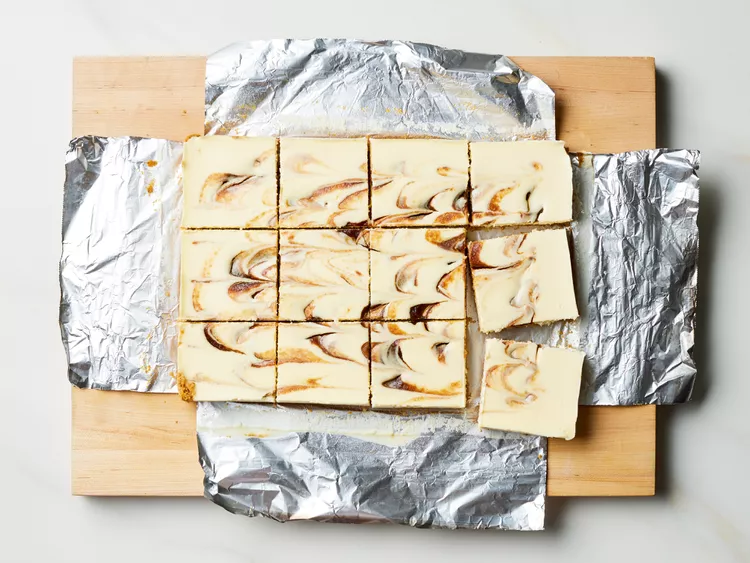 These apple butter cheesecake bars taste amazing. Think rich and creamy cheesecake filling studded with swirls of apple butter and baked in a cinnamon graham cracker crust.