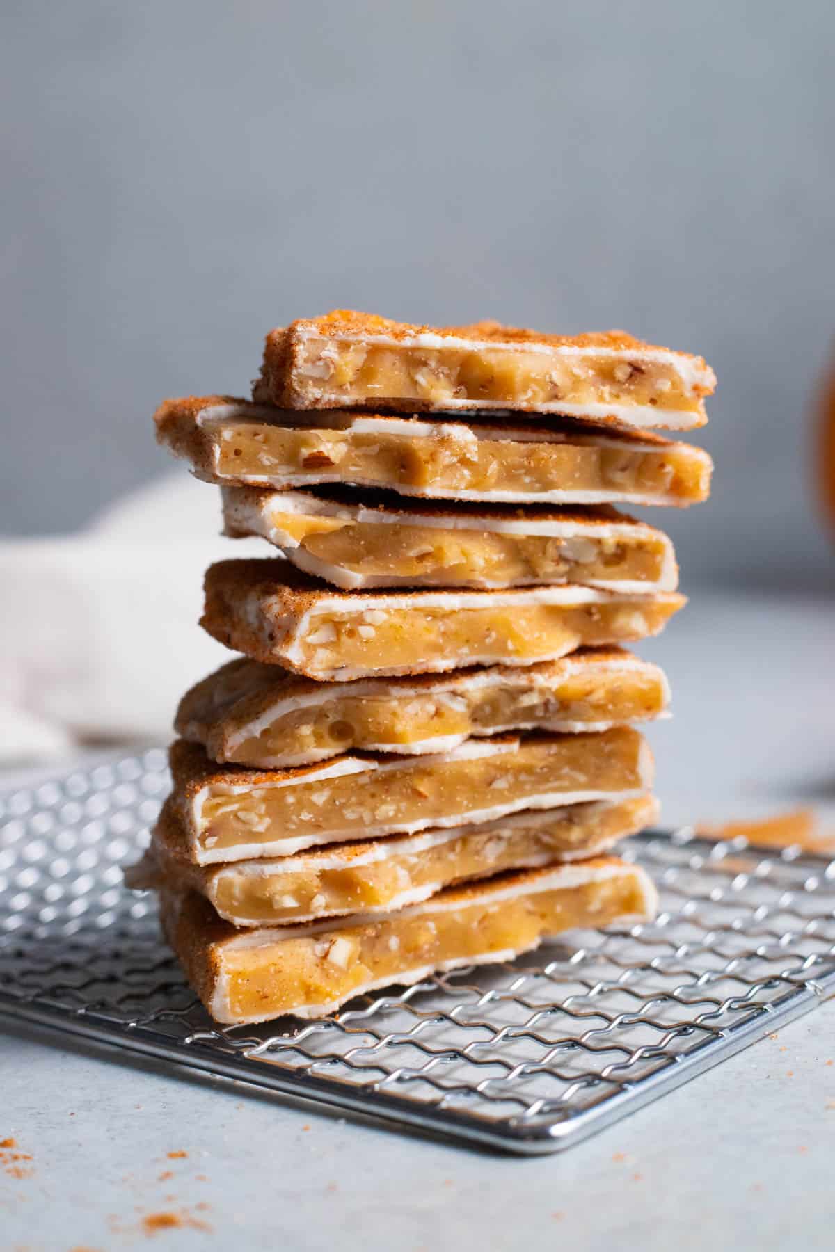 Make chewy, buttery, and crunchy pumpkin spice toffee on the stove with only 8 ingredients. Top with a layer of sweet white chocolate and add lots of flavorful toasted pecans for an irresistible fall treat. Follow my video tutorial and guide for helpful homemade candy tips.