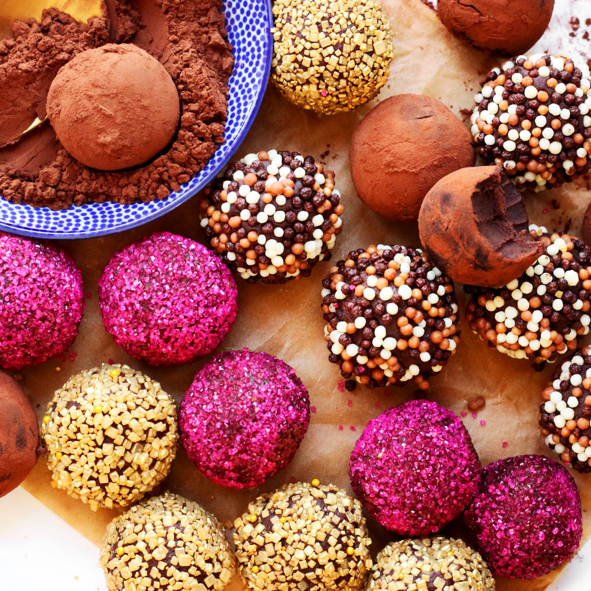These homemade chocolate truffles are extra creamy with the addition of butter. After mixing the 4 ingredients together, let the mixture set in the refrigerator, then roll into balls. Follow this homemade truffles recipe and the helpful video tutorial below!