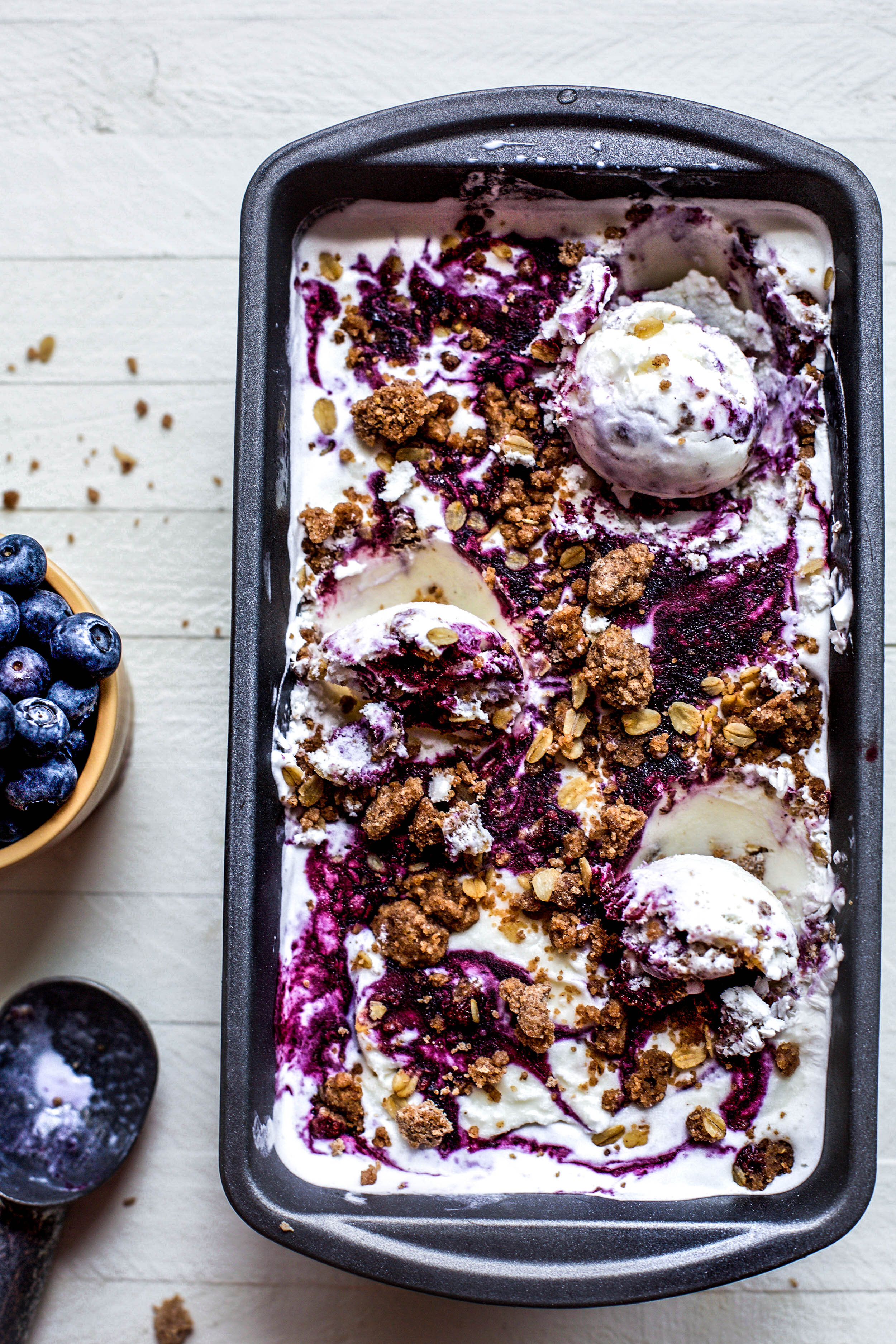This homemade no-churn ice cream recipe is a popular method because it doesn’t require an ice cream maker. Combine a few simple ingredients together, then fold in blueberry sauce and a deliciously buttery brown sugar crumble. It’s ready to eat after 8 hours of freezing.
