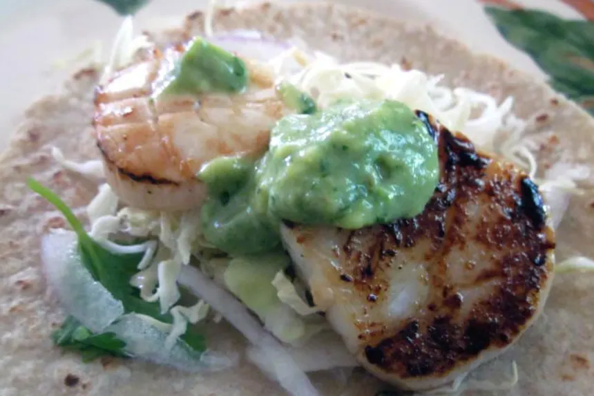 "This is surprisingly fast to make and since scallops are sliced 1/2 to 1/3 horizontally (depending on size), they grill up very quickly on the pan. If scallops are large, then 1 taco equals 1 large scallop. But, if you are using medium or smaller scallops, you may need to use more scallops per taco. I love the creaminess of this avocado sauce which goes really well with other grilled fish or seafood items too."